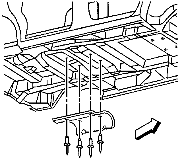 1. Install the exhaust muffler heat shield to the vehicle with new rivets.
