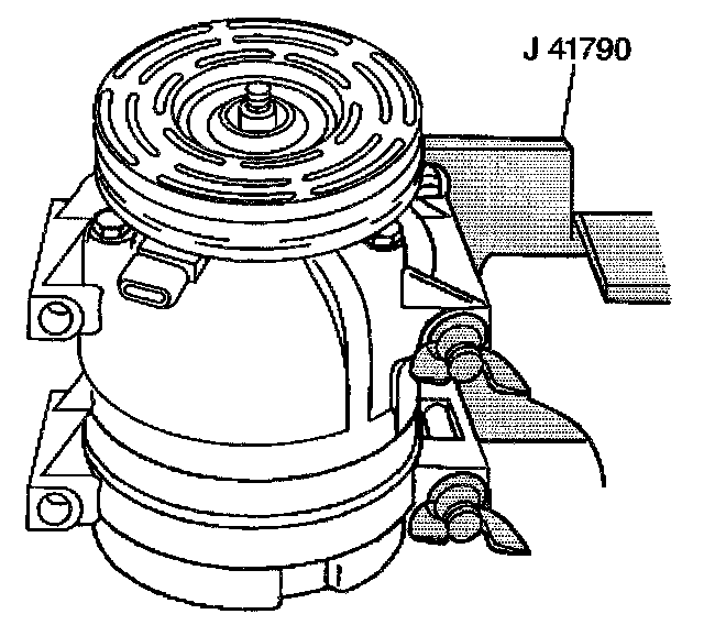 4. Install the 4 inch through bolts and washers from the J 42136 tool kit into the J 33025 and attach them to the compressor mounting bosses.