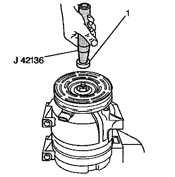 1. Dip the new seal (1) in clean 525 viscosity refrigerant oil.