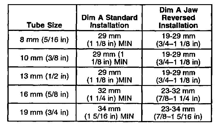 Minimum Tube Length Required Table