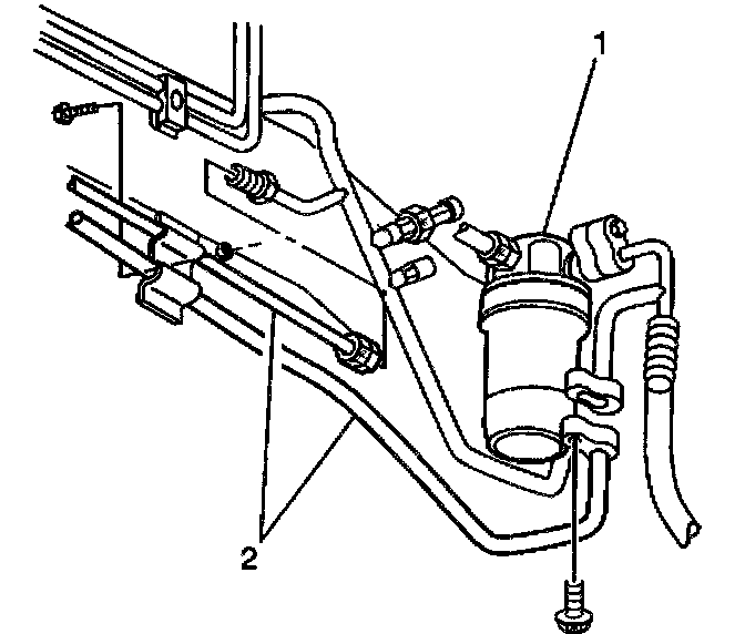 4. Disconnect the liquid line (2) at the rear fining (C34 only).