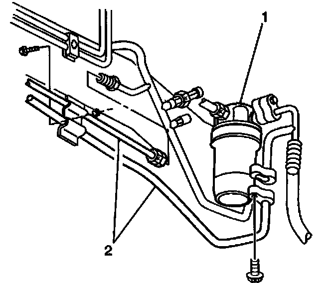 2. Lightly coat the new O-ring seals (1) with mineral base 525 viscosity refrigerant oil.