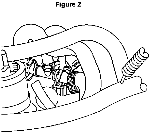 12. (C34 ONLY) - Install the new heater hose from the pump end outlet to the rear heater coolant inlet tee (shown in Figure 2). The hose ends are labelled for flow and attachment point.