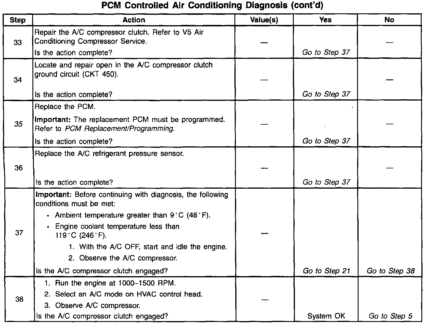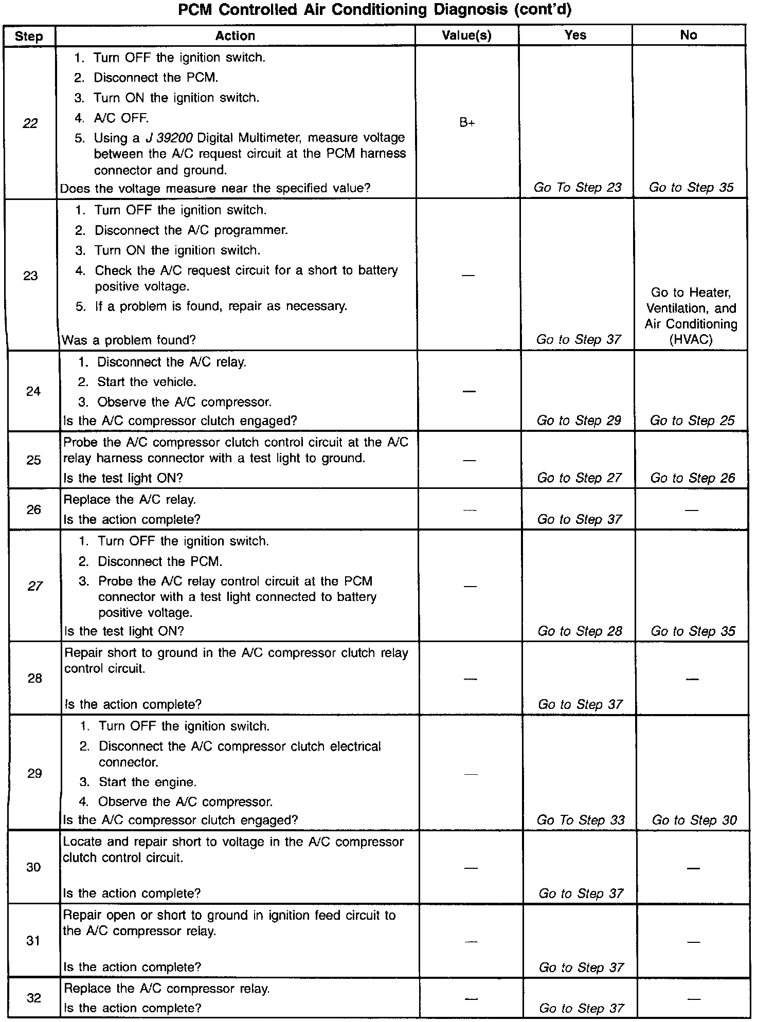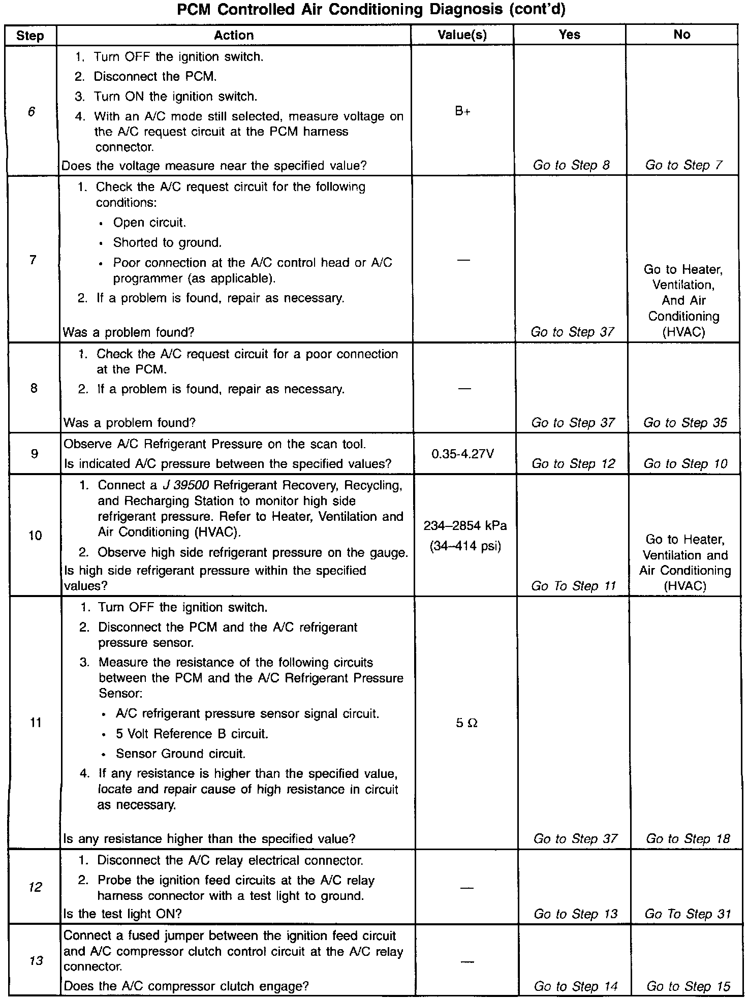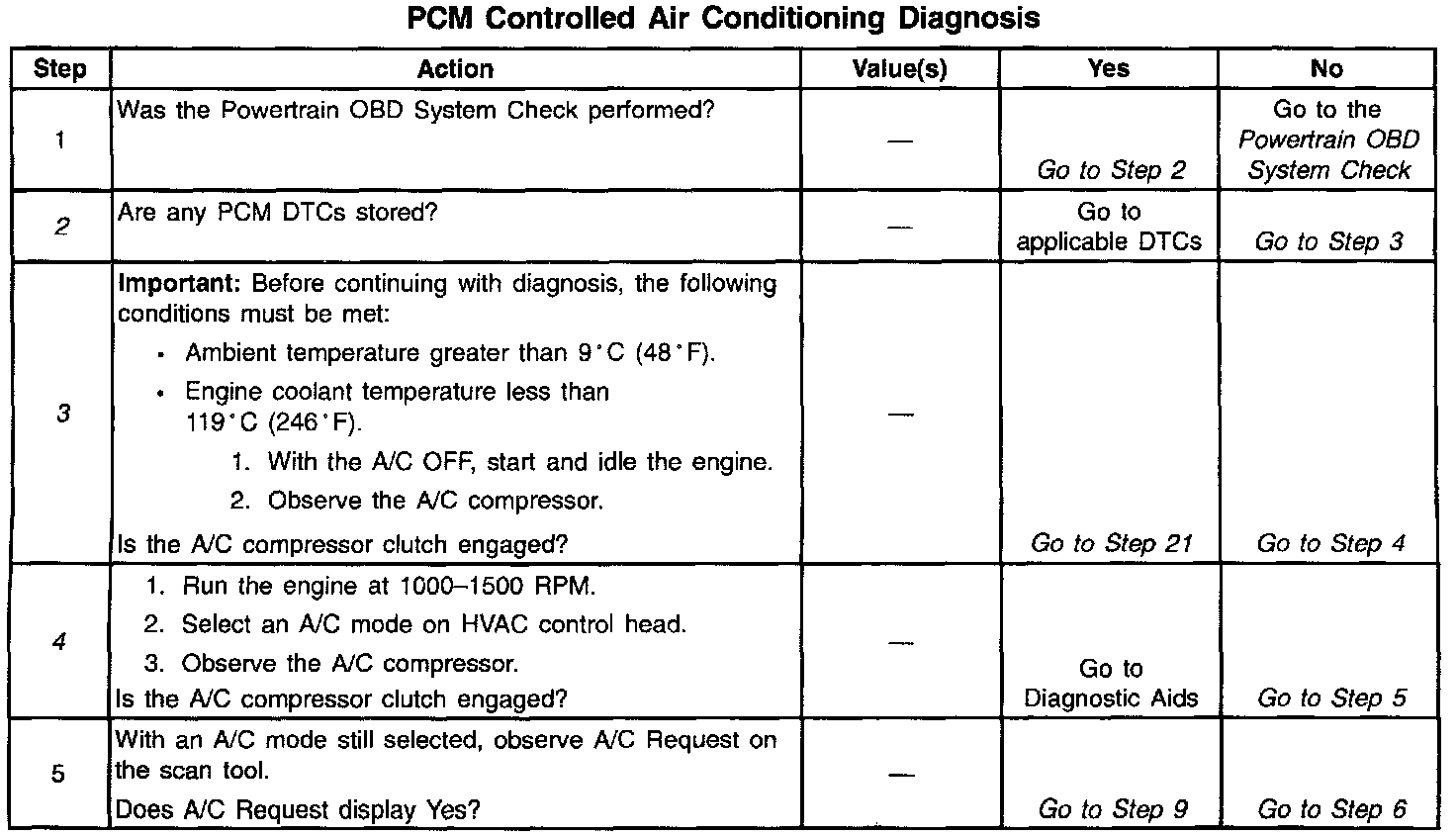 2. Stored diagnostic trouble codes may disable the A/C compressor. This diagnostic table may lead to improper diagnosis and replacement of good parts if diagnostic trouble codes are present.