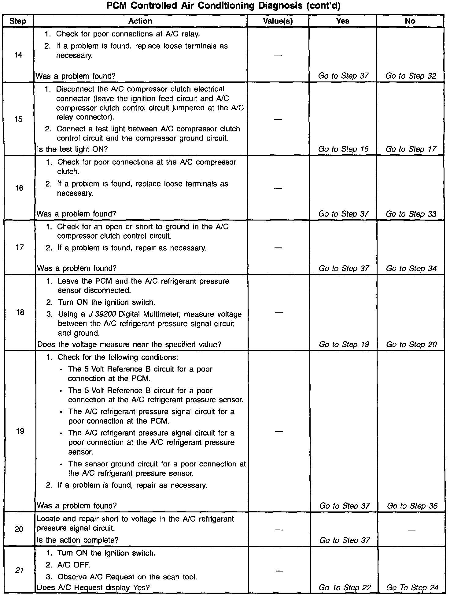21. Determines if the PCM is turning the A/C relay ON due to a false A/C request.