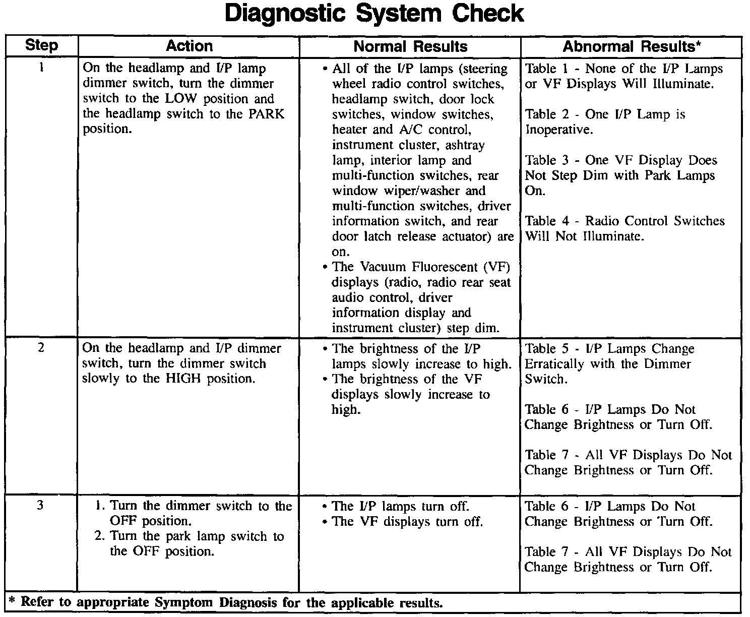 System Check - Interior Lights Dimming
