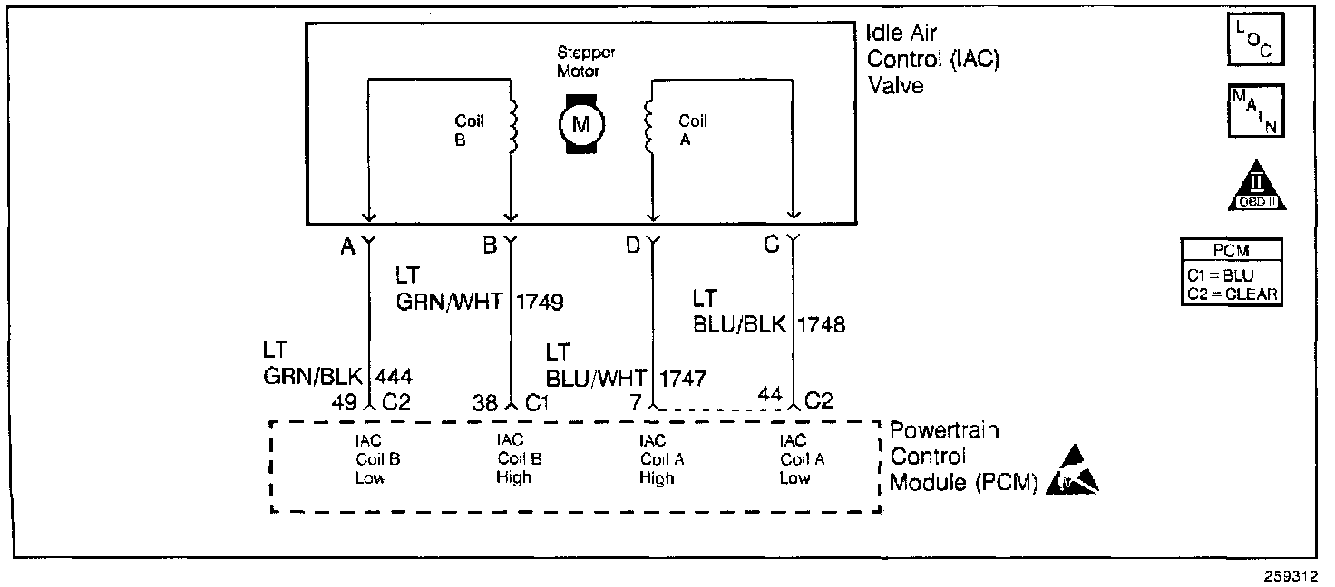 - Poor connection at PCM or IAC motor. Inspect harness connectors for backed out terminals, improper mating, broken locks, improperly formed or damaged terminals, and poor terminal-to-wire connection.