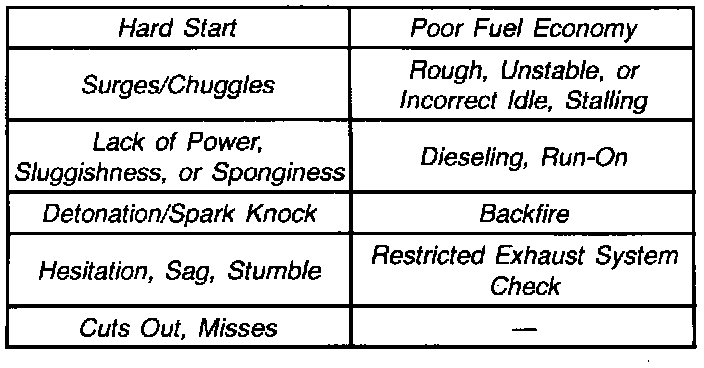 Use the tables when diagnosing a symptom complaint.