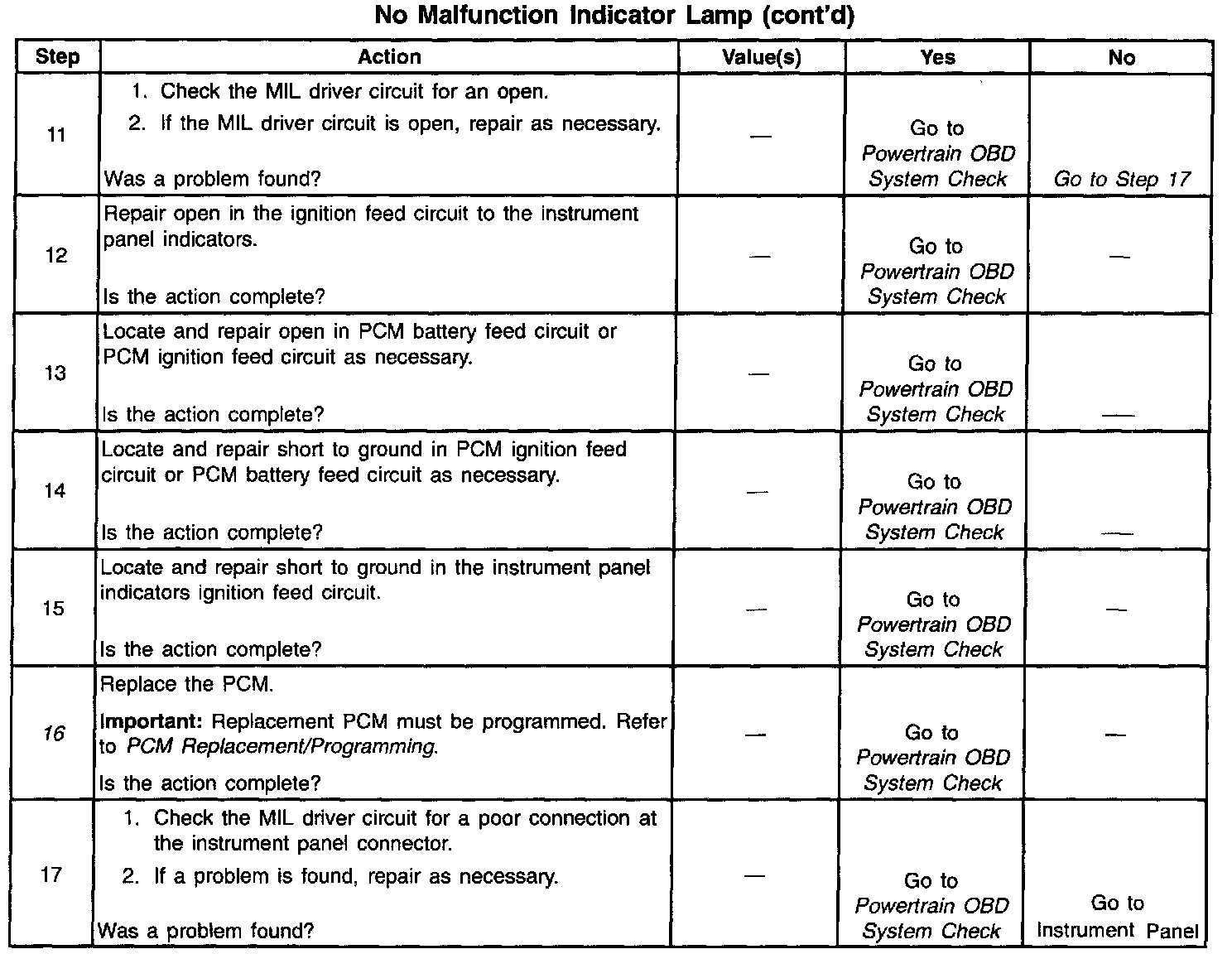 - If the engine runs OK, check for a faulty light bulb, an open in the MIL driver circuit, or an open in the instrument cluster ignition feed.