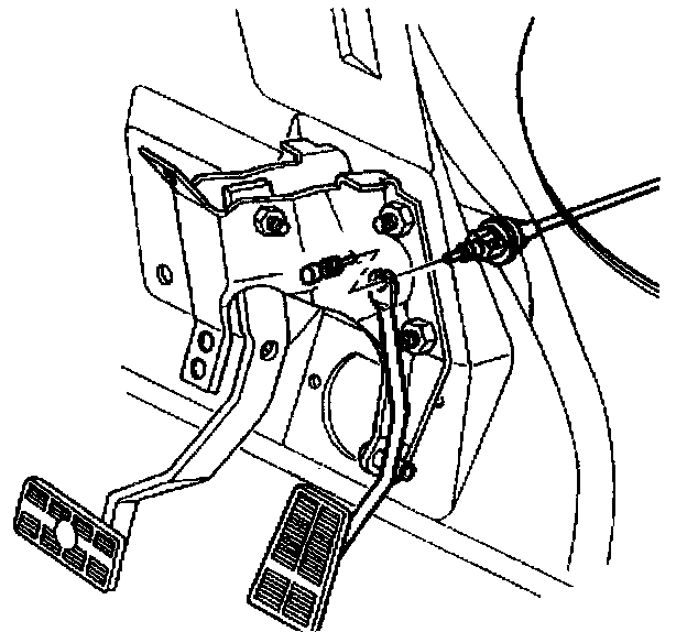 3. Accelerator cable through the slot in the accelerator pedal lever.