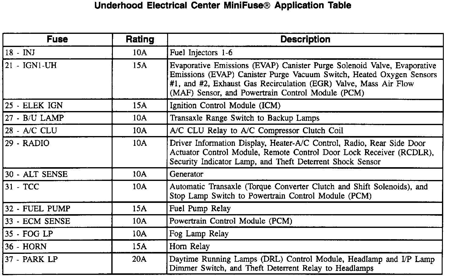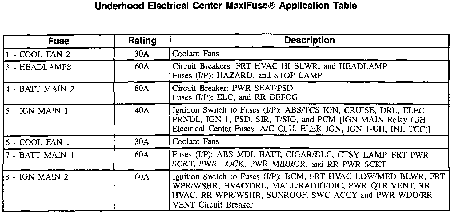 Underhood Electrical Center Label (Part 2 Of 2):