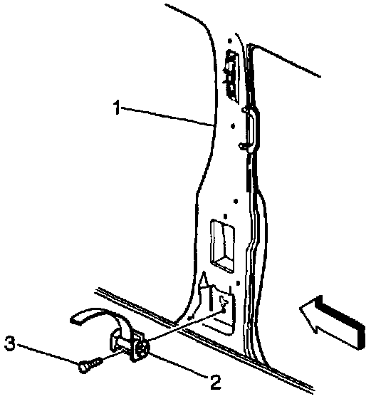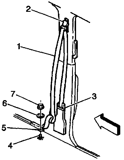4. Install the seat belt retractor (2) to the B-pillar (1).