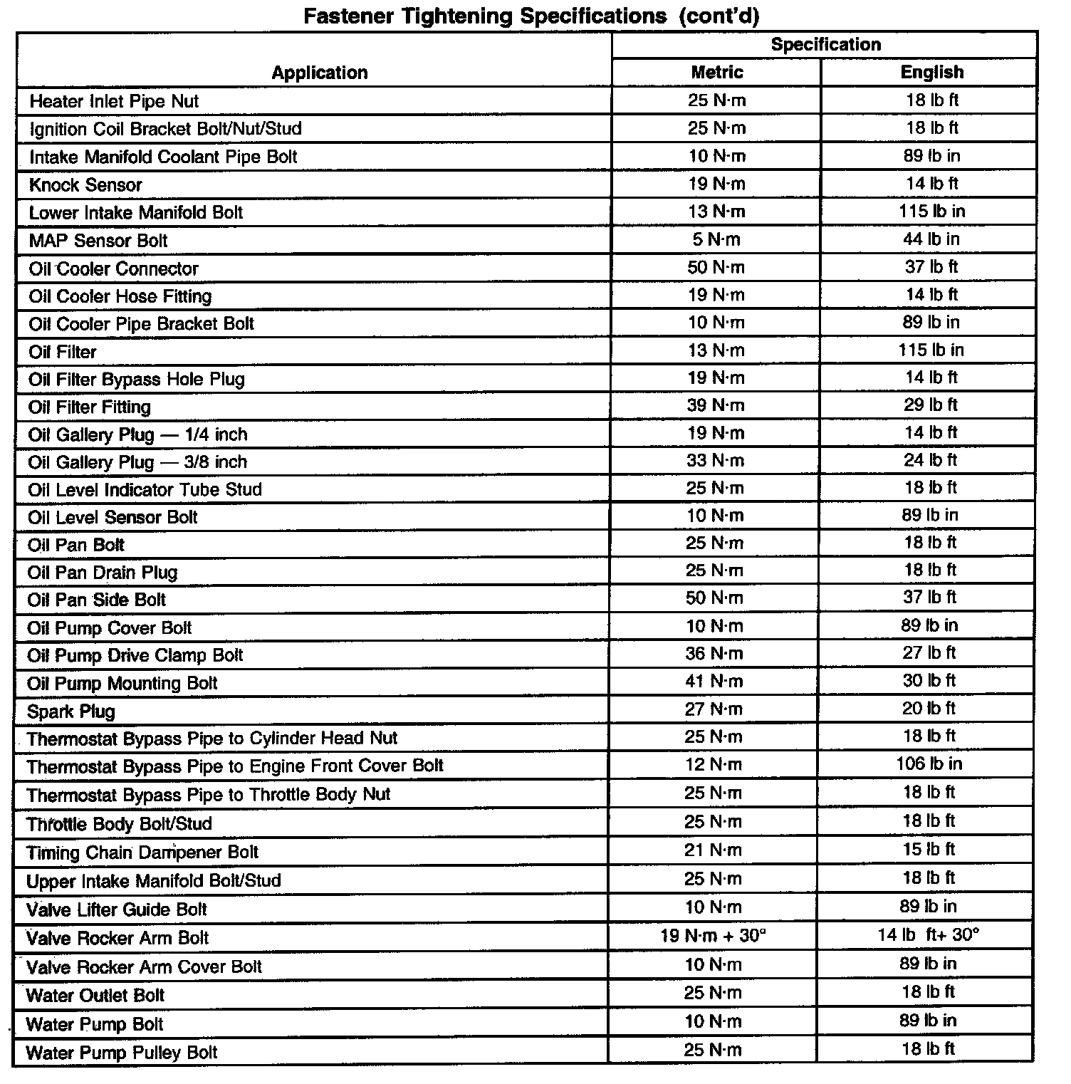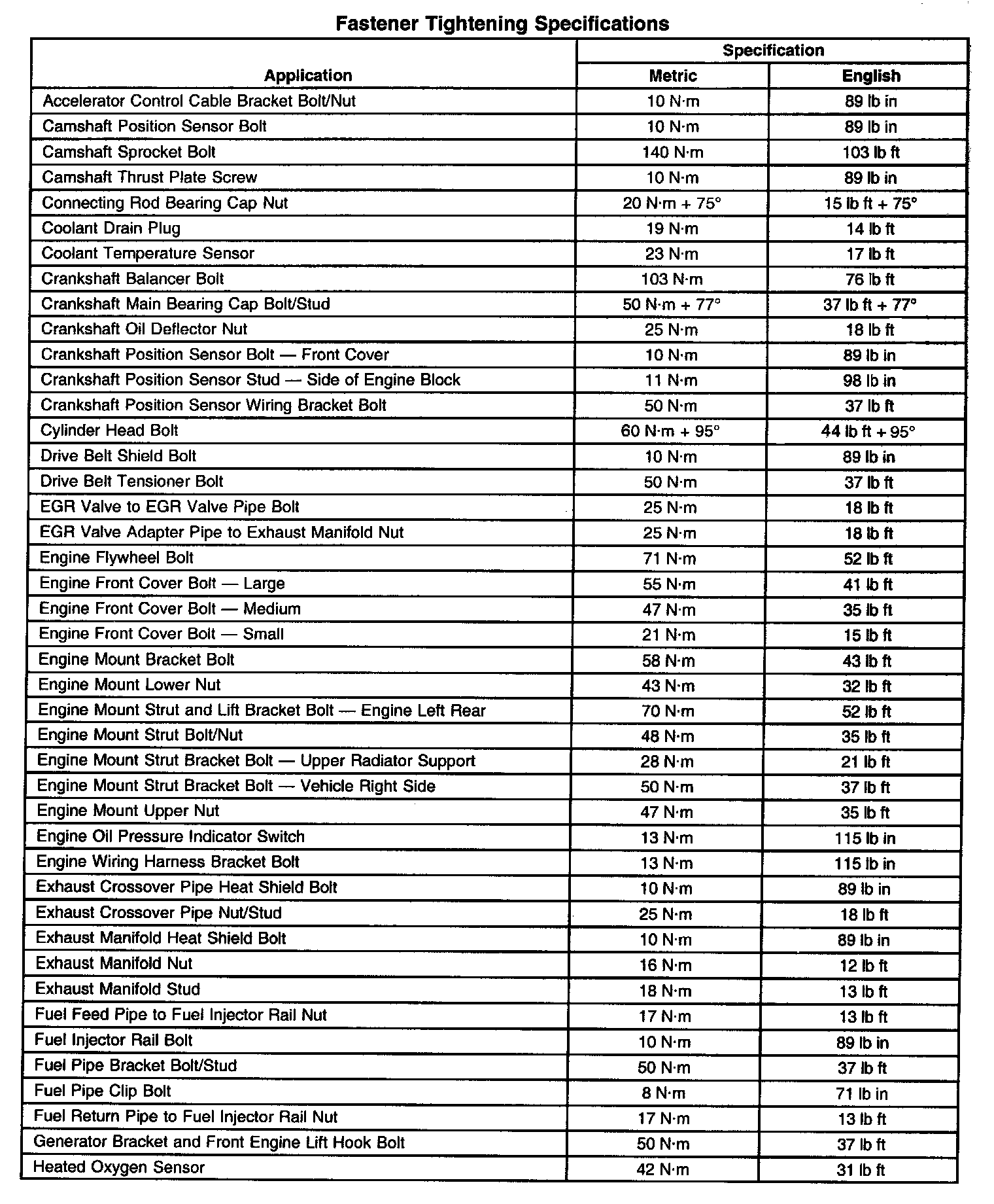 Fastener Tightening Specifications - Engine