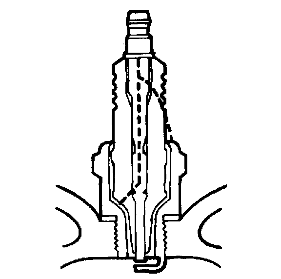 Low or high spark plug installation torque or improper seating of the spark plug can result in the spark plug running too hot and cause excessive gap wear. The spark plug and cylinder head seats must be in good contact for proper heat transfer and spark plug cooling. Dirty or damaged threads in the head or on the spark plug can keep the spark plug from seating even though the proper torque is applied. Once the spark plugs are properly seated, tighten the spark plug to the proper torque. Refer to Spark Plug Usage. Low torque may result in poor contact of seats due to a loose spark plug. Overtightening may cause the spark plug shell to be stretched and also result in poor contact between seats. In extreme cases, exhaust blow-by and damage beyond simple gap wear may occur.