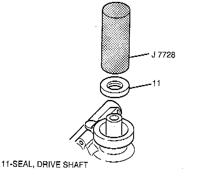 ^ Drive shaft seal (11) into pump housing (10) with tool J 7728.