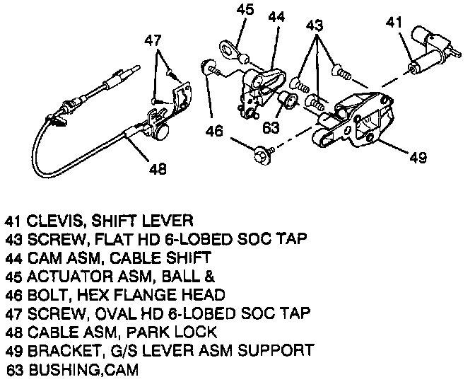 10. Shift lever clevis (41) and shift gate to support bracket (49).