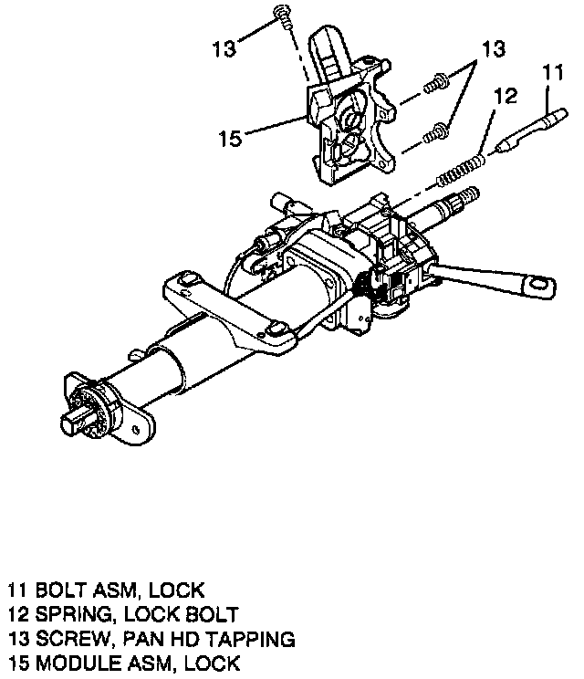 NOTICE: Lock bolt assembly (11) is under slight spring tension from lock bolt spring (12). Hold lock bolt (11) in place while removing lock module assembly (15).