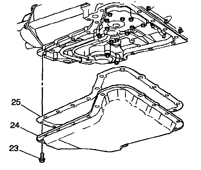 4. Remove the oil pan bolts (23) from the sides.