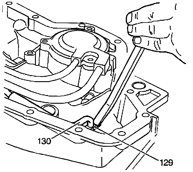 3. Use a large screwdriver in order to gently pry the lube oil pipe retainer (129) from the case.