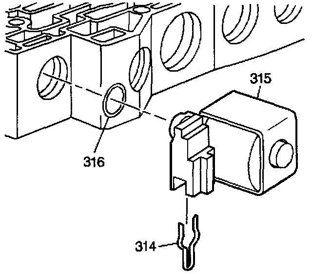 14. Remove the 1-2, 3-4 shift solenoid valve assembly (315) and the valve seal (316).