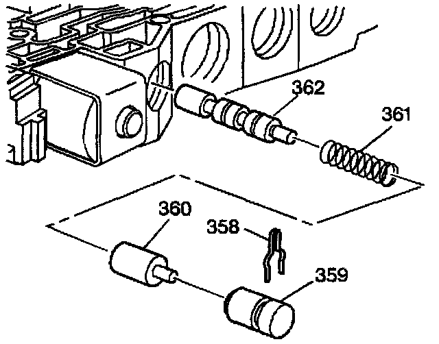 26. Remove the coiled spring pin (363) and the valve spring (365) from the reverse servo boost valve.