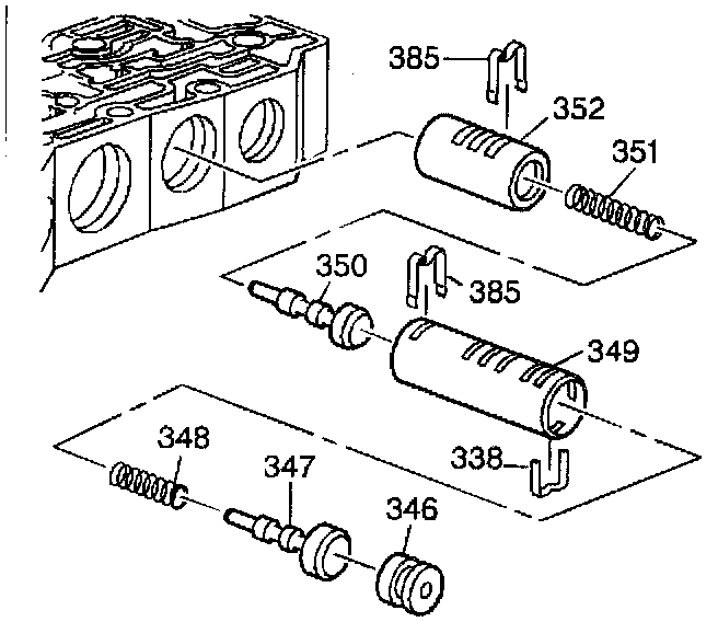 5. Remove the sleeve (384), the TCC regulator valve (332), and the spring (331).