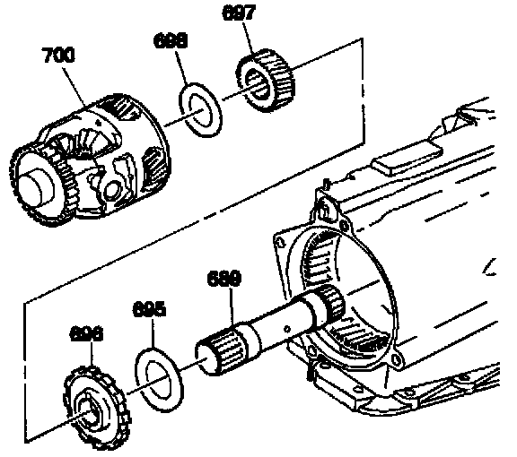 2. Remove the thrust bearing (698) from the differential carrier sun gear. The bearing may be stuck to the carrier assembly.