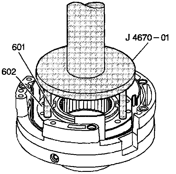 5. Use J 4670-01 in order to install the fourth clutch spring snap ring (601).