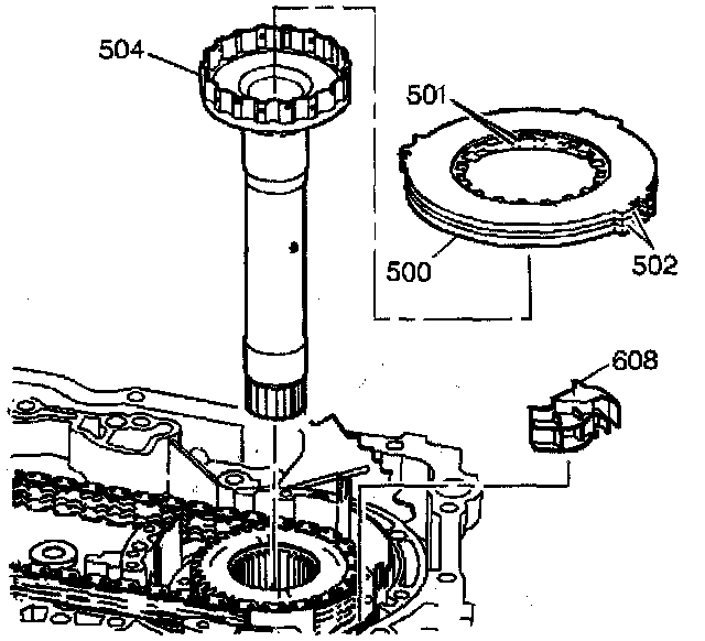 Remove the fourth clutch fiber and steel plates (501, 502).
