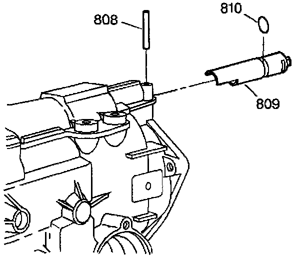 3. Install a new park pawl actuator guide O-ring seal (810) onto the park pawl actuator guide (809).