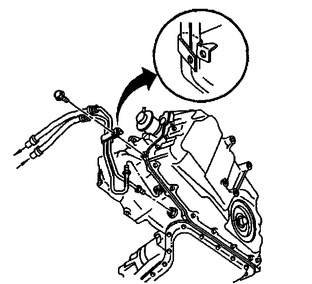 6. Remove the transaxle oil cooler hose clip bolt.