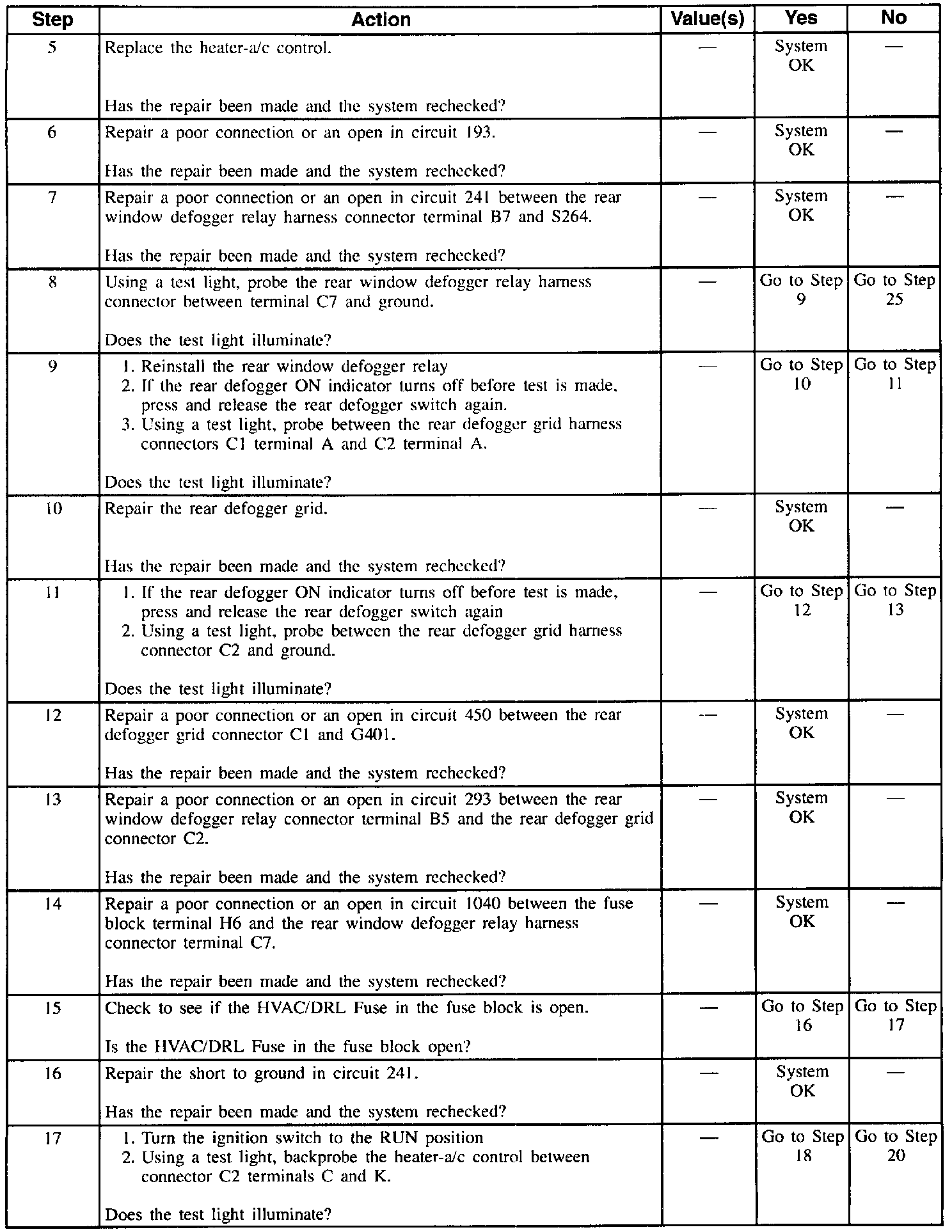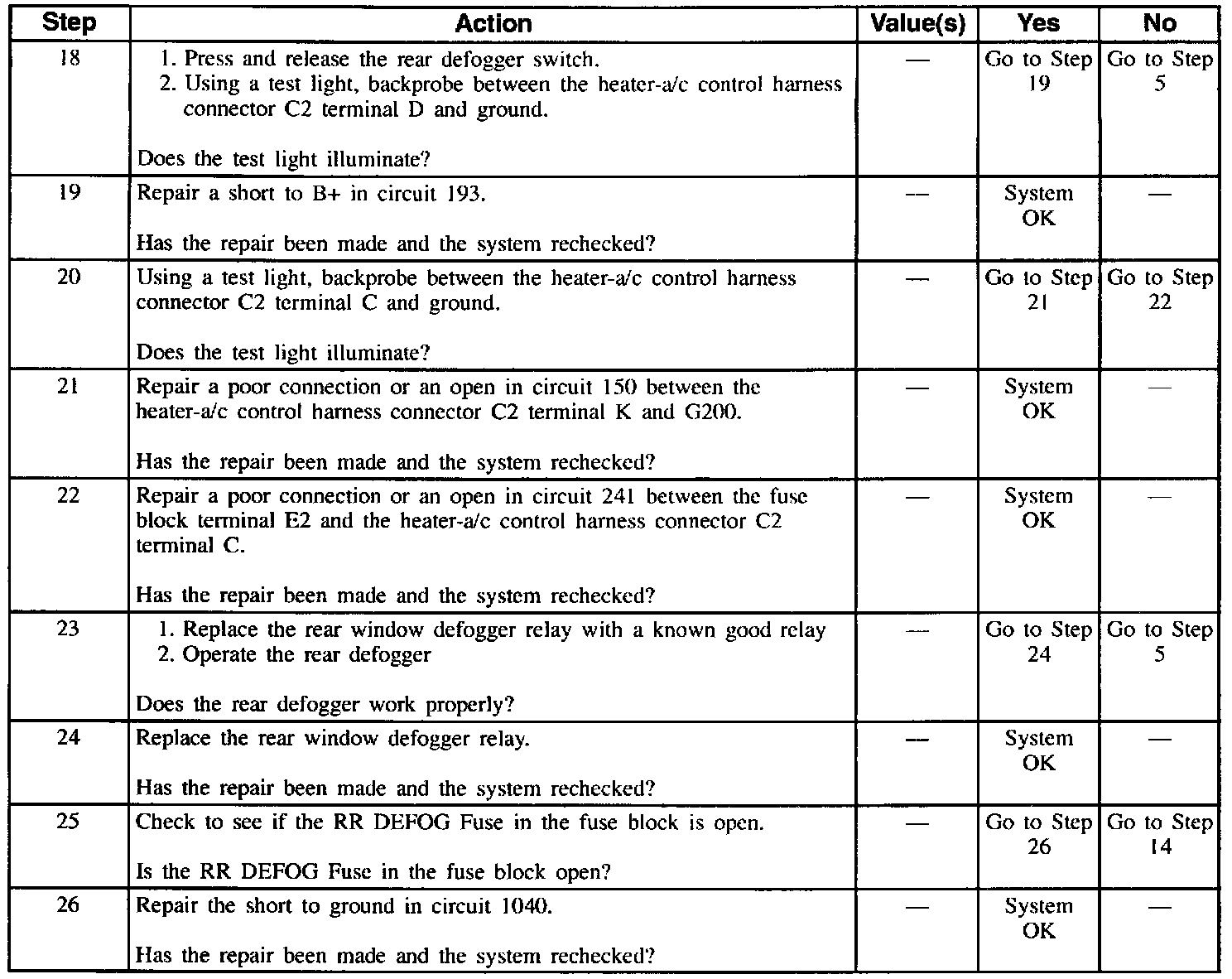 Table3: Defogger Inoperative (Part 2 Of 3):
