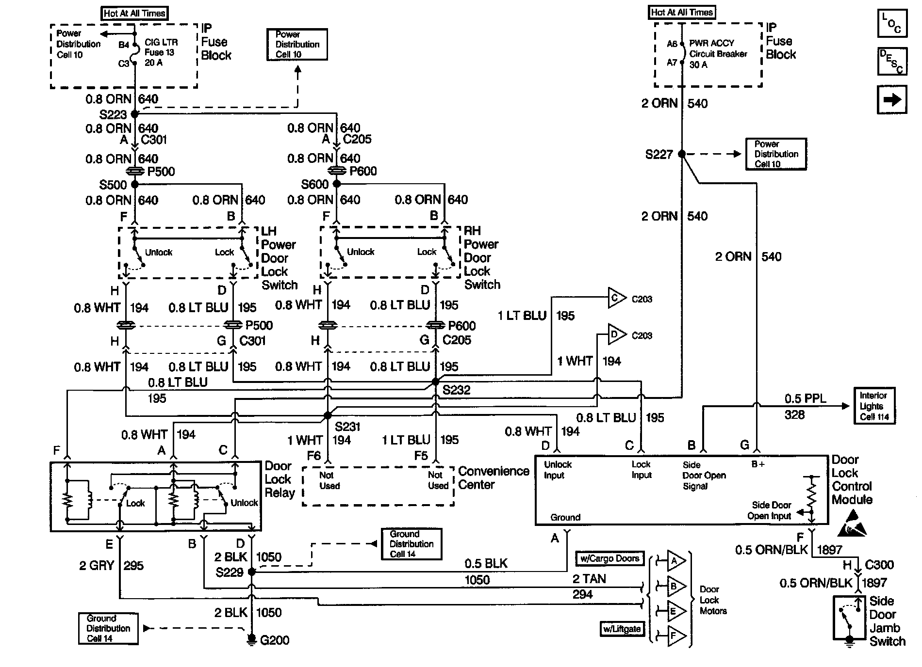 Door Locks Schematics: IP Fuse Block, Door Lock Relay, Door Lock Control Module: