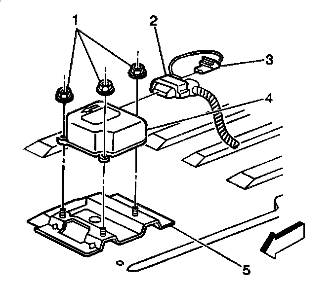 1. Install the SDM (4) to the vehicle (5).