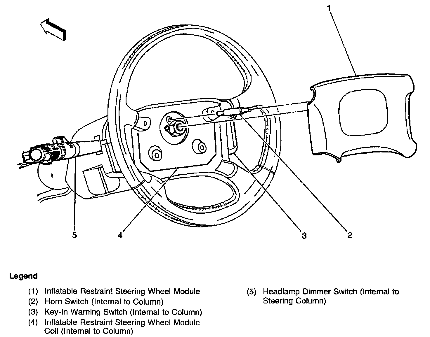 Inflatable Restraint Steering Wheel Module, Horn Switch, Key-in Warning Switch, Inflatable Restraint Steering Wheel Module Coil, Headlamp Dimmer Switch: