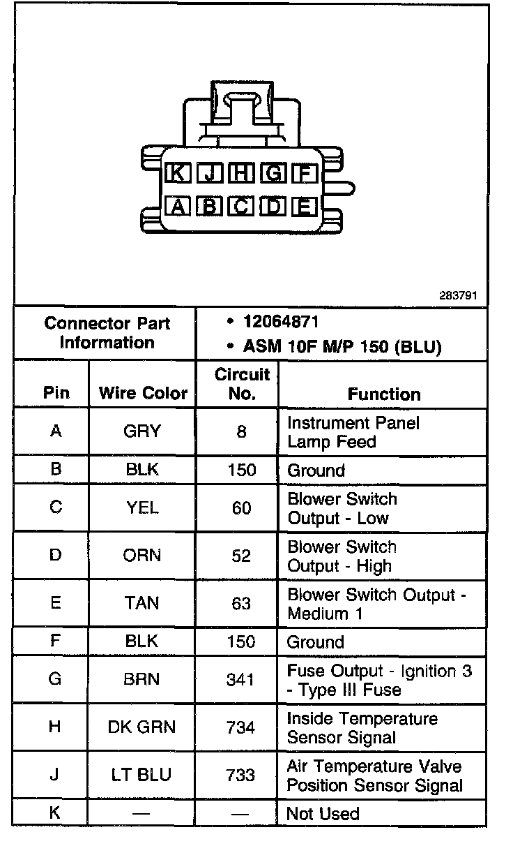 Front Auxiliary HVAC Control Module Connector: Cargo: