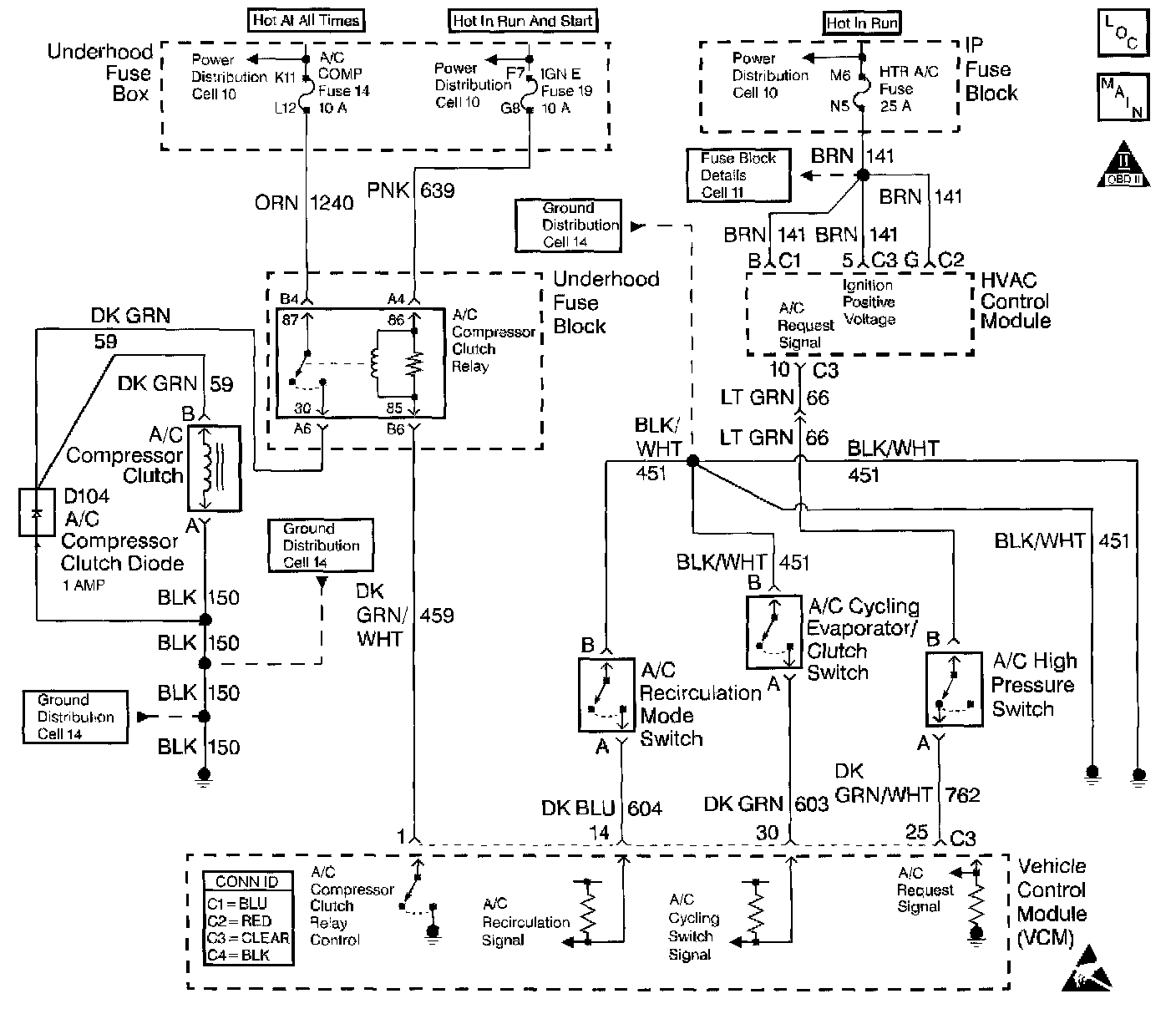 15. The A/C request signal circuit consists of the HVAC Control module, the A/C high pressure cutout switch and related wiring.