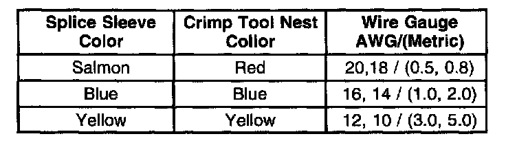 5. Select the proper splice sleeve (2) and the required crimp nest tool, refer to the Crimp and Seal Splice Table.