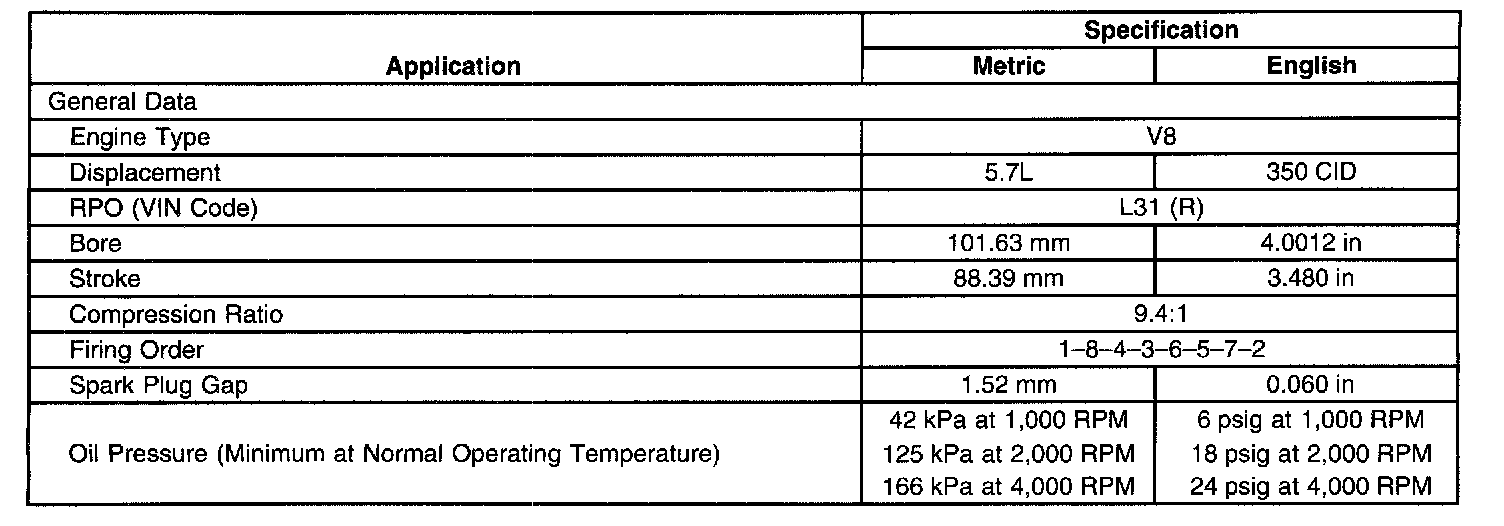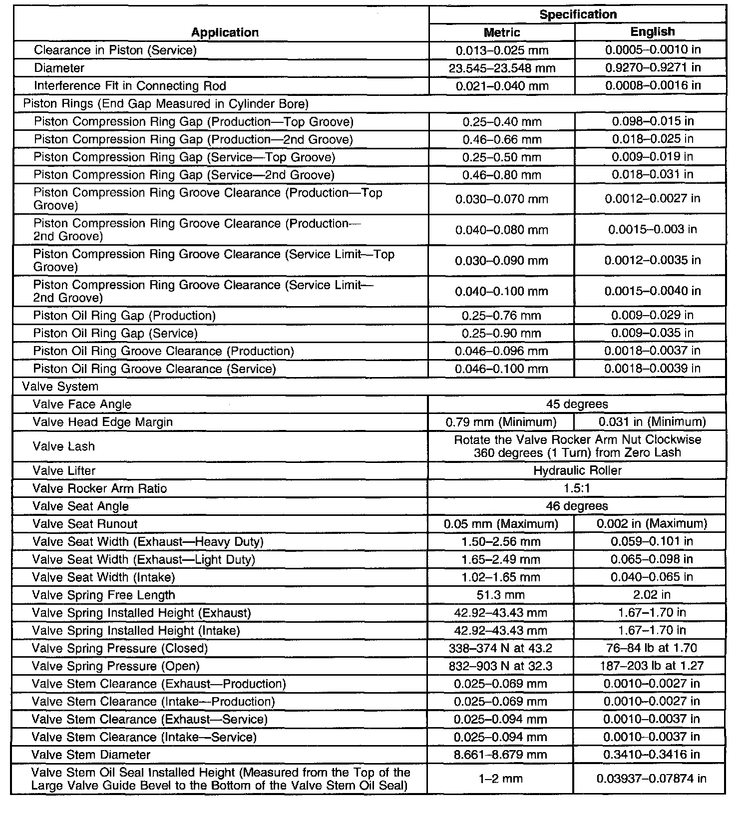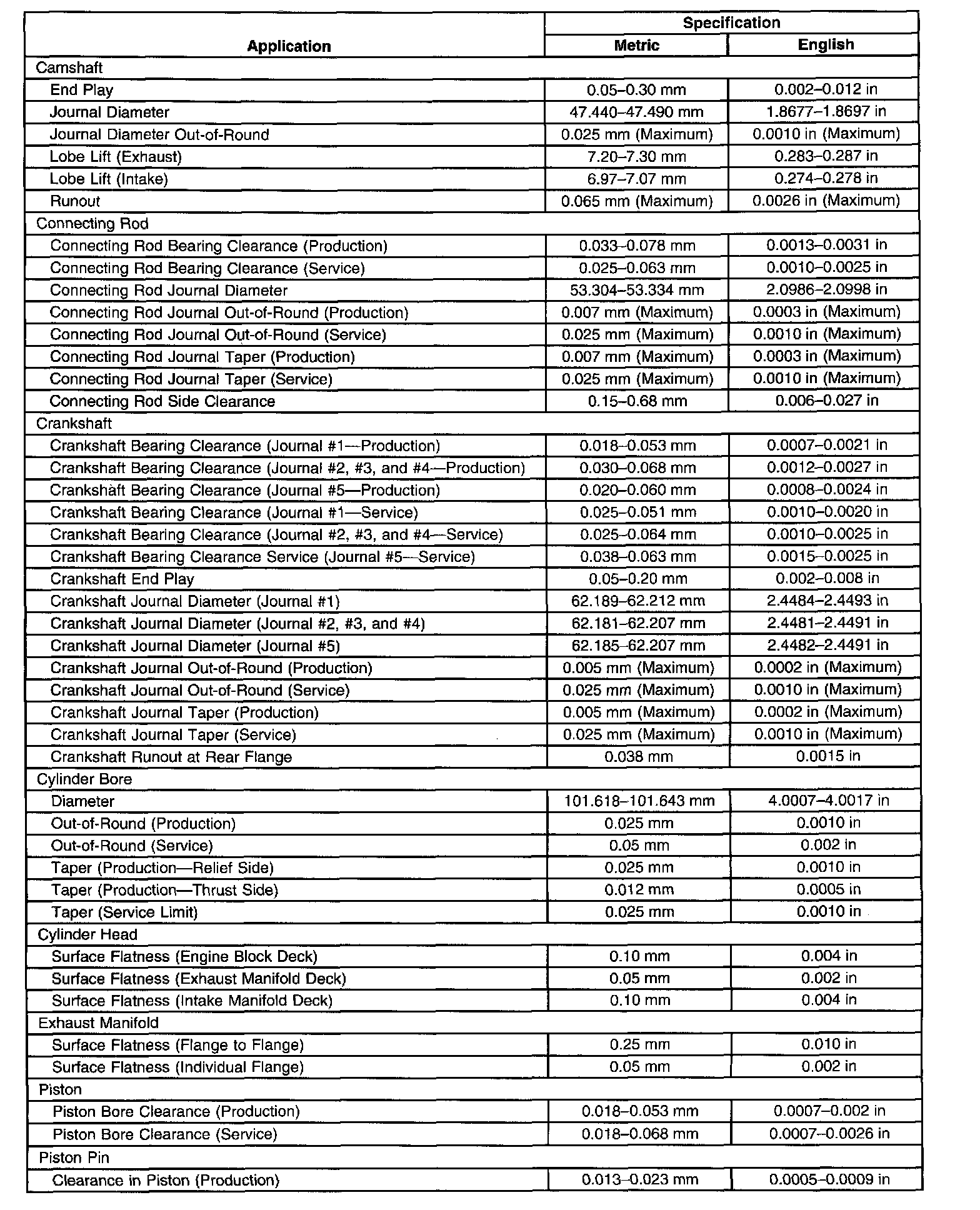 Engine Mechanical Specifications