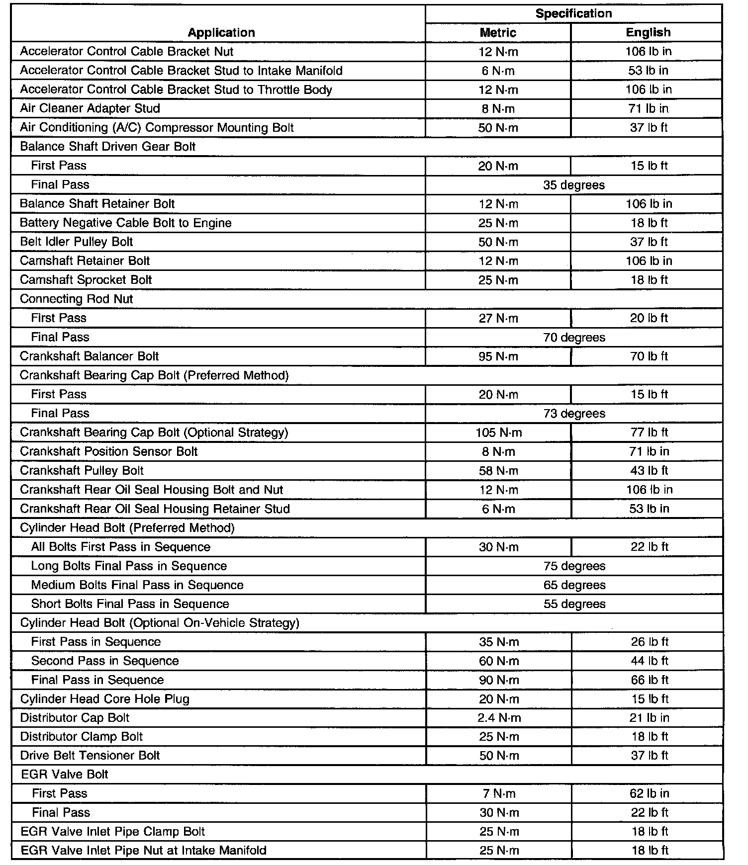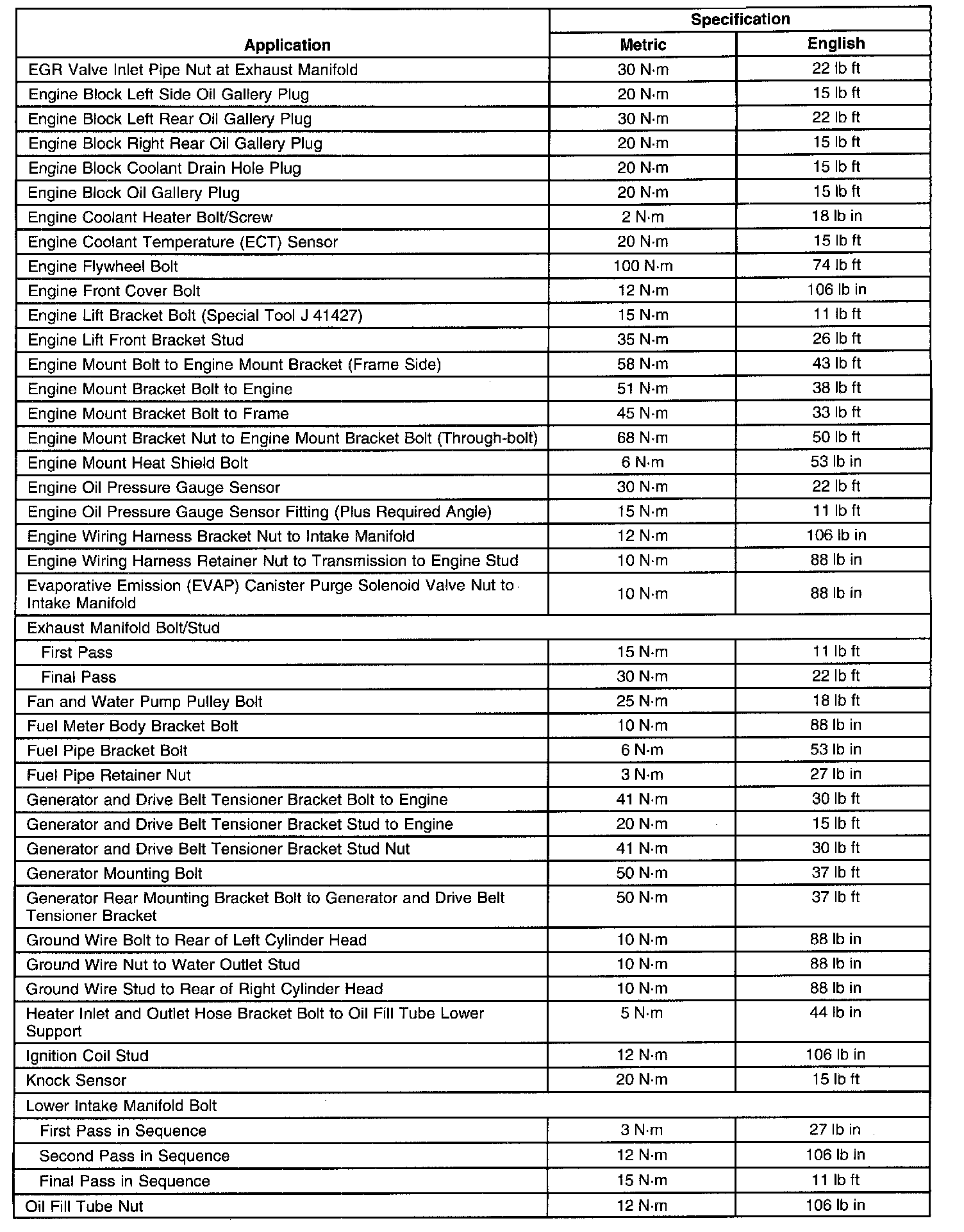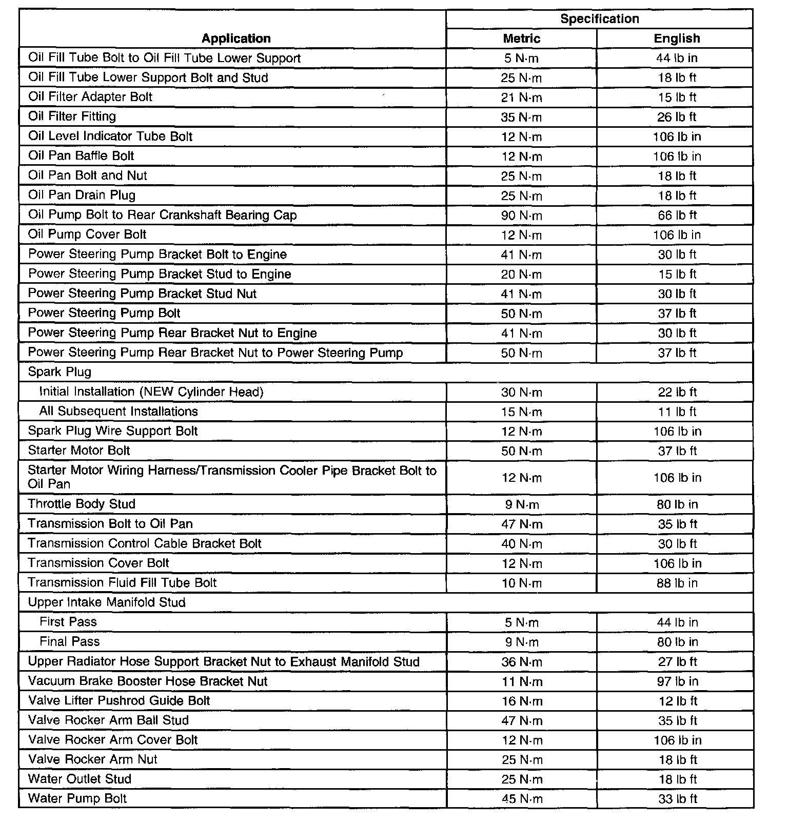 Fastener Tightening Specifications