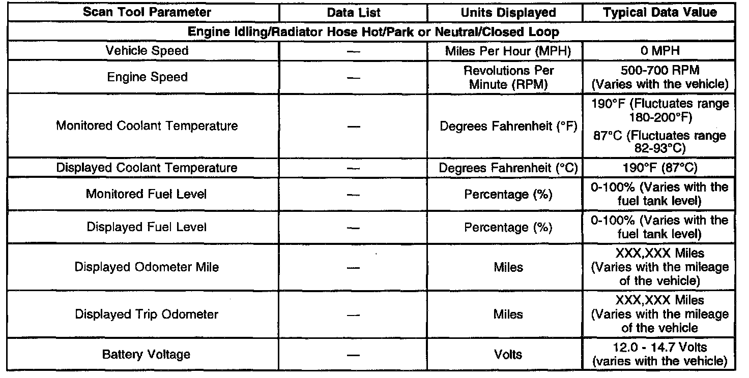This data is the cluster is measurement of the engine coolant temperature. The data is provided by the VCM/PCM on the Class 2 serial data line. If a Class 2 communication failure occurs, this data will be -40°F (-40°C).