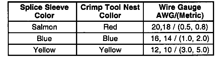 5. Select the proper splice sleeve (2) and the required crimp nest tool, refer to the Crimp and Seal Splice Table.