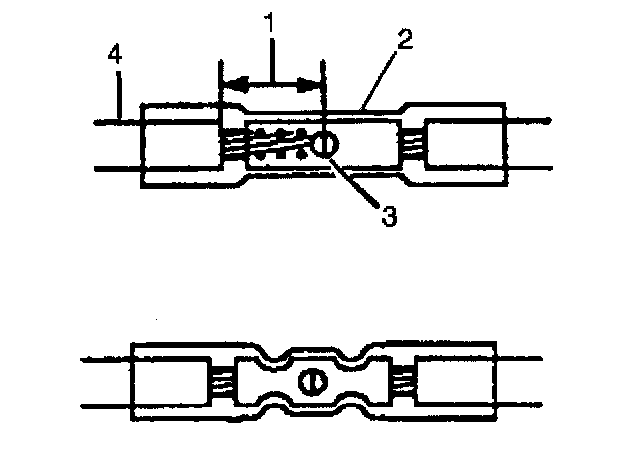 9. Insert the wires into the splice sleeve until the wire hits the barrel stop. The splice sleeve has a stop in the middle of the barrel in order to prevent the wire from passing through the splice (3).