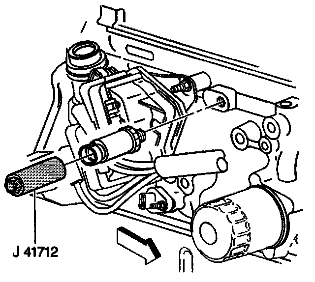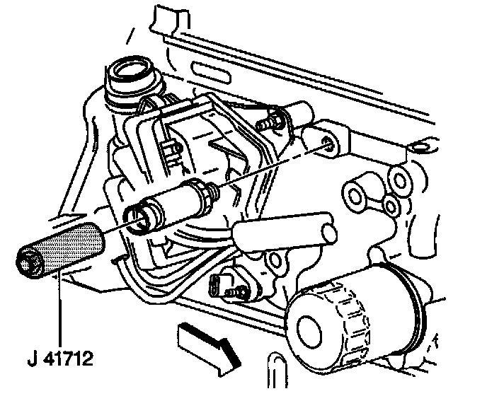 4. Using the J 41712 remove the engine oil pressure gauge sensor.