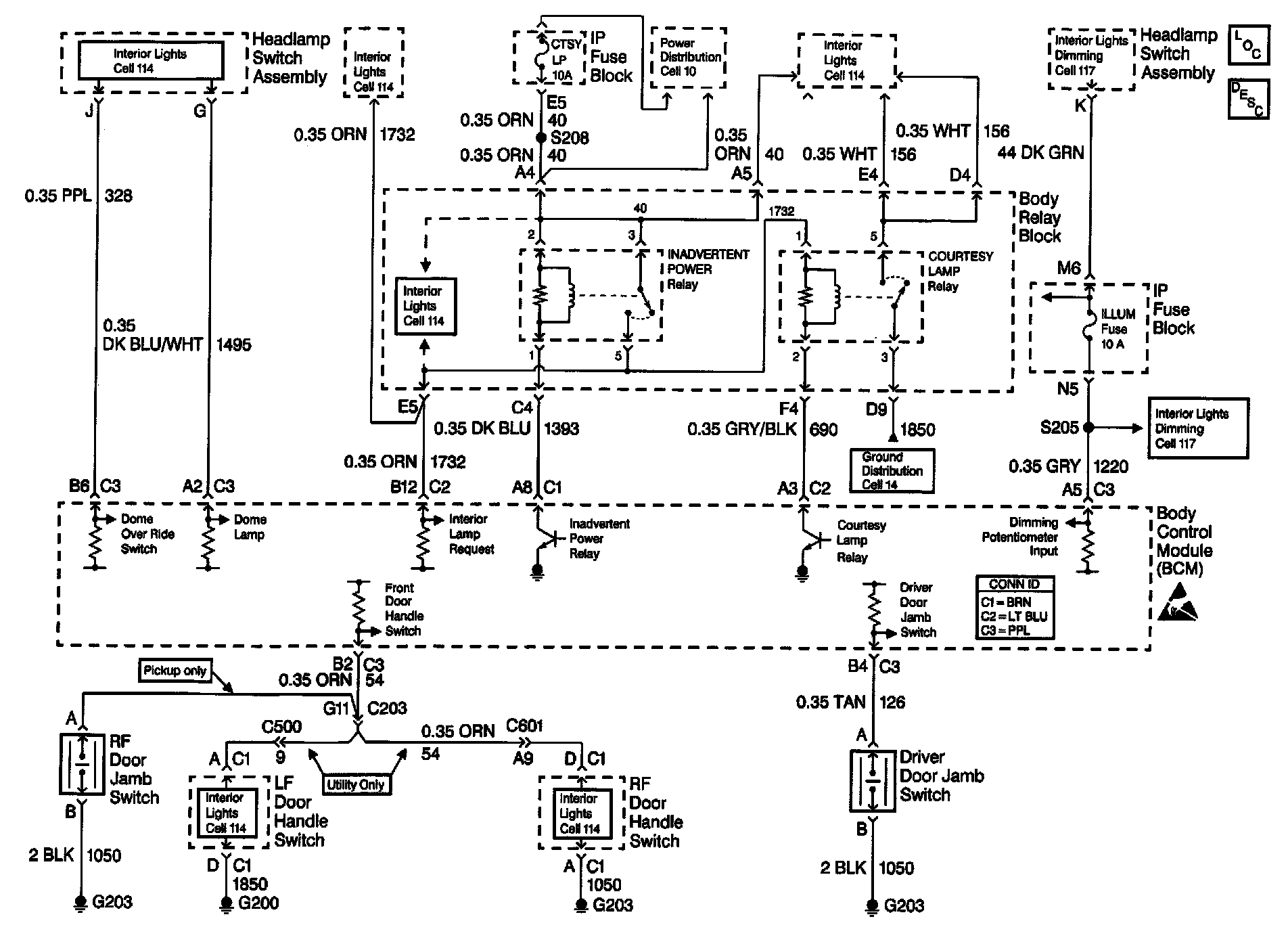 Body Control Module Schematics: DTC B2617 And B2618 - Courtesy Lamp Circuit: