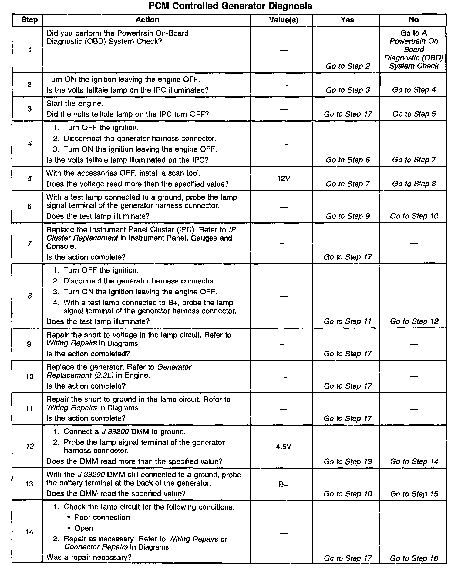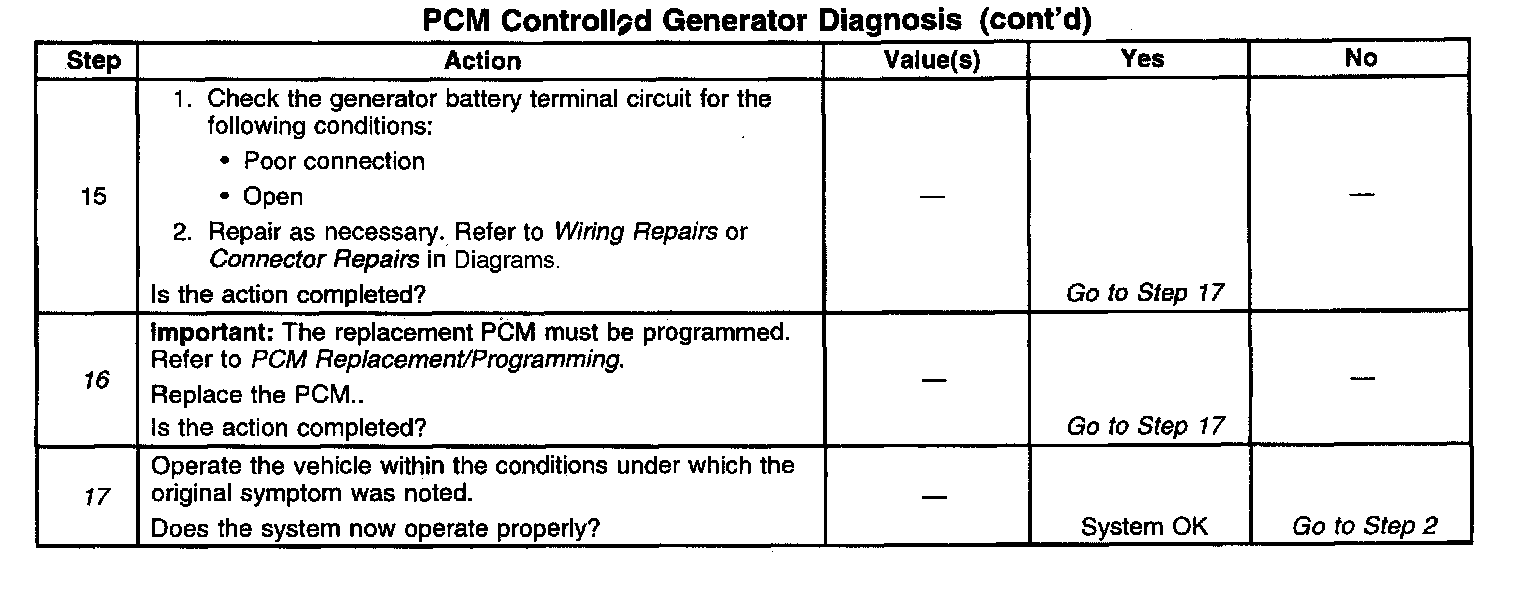 12. The PCM supplies a voltage to the generator. If voltage is available to the generator at this terminal, then the PCM and wiring are OK.