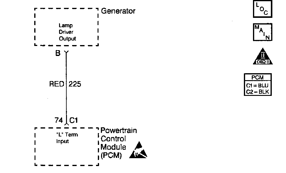 The generator communicates to the Powertrain Control Module (PCM) over one line, the L or Lamp circuit. The PCM uses the L circuit to monitor faults in the charging system.