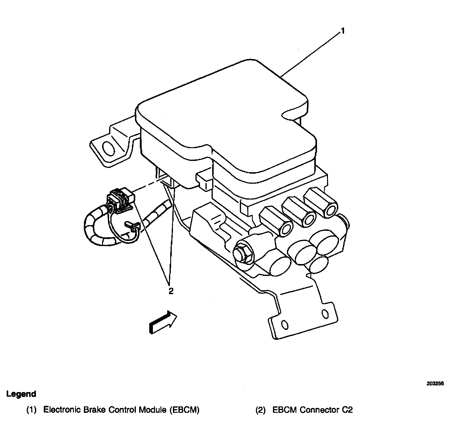 Electronic Brake Control Module (EBCM) Connector C2 (4 Cavities): The SIR body harness connector on the LH of the EBCM