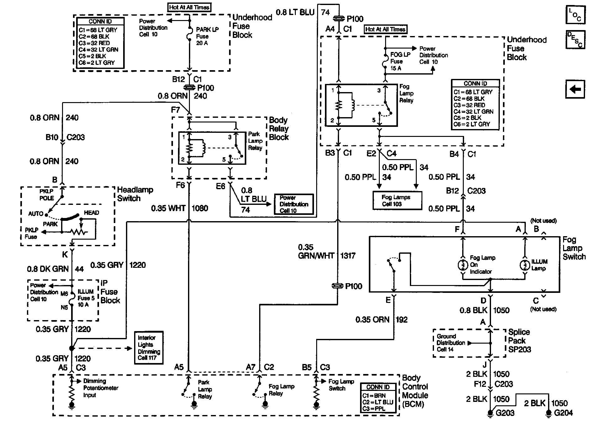 Body Control Module Schematics: Fog Lamp Switch And Relay And Park Lamp Relay: