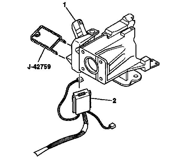 5. Pull the key alarm connector (1) out of the lock module assembly (2).